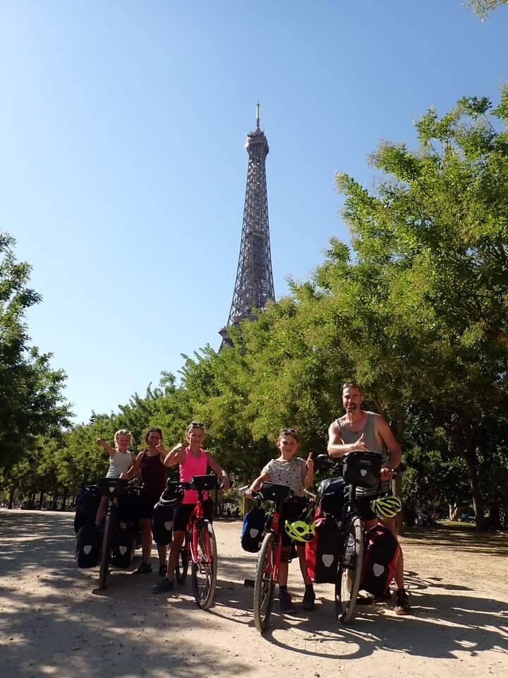 De foto's worden gemaakt en dan wordt het tijd om naar ons hotel te fietsen. Vanaf de Eiffeltoren is dat 12 kilometer fietsen. Na dit hoogtepunt is het voor de kinderen een moeilijke opgave om nog zo ver te fietsen. Bij een stoplicht botst Isis door de vermoeidheid op Phileine. Gelukkig valt het allemaal mee en rijden we langs de Seine richting ons hotel.
