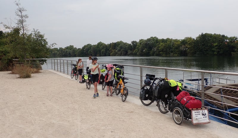 Uiteindelijk komen we op de route. We volgen een stuk kanaal Parijs uit. Het is er druk met grote binnenvaartschepen. Als grap toetert een schipper net als we onder een viaduct door fietsen. Wat een kabaal! Het kanaal loopt dwars door een aantal slechte wijken van Parijs. We zien op veel plaatsen rommel, vuil en oude kleding. Ook zien we een krot met de woorden 'Merci France!' erop gespoten. Overal hangt was uit de ramen en huizen zijn met planken dichtgetimmerd. We wanen ons even in een heel andere wereld. Erg op ons gemak voelen we ons niet en we zijn blij als we een bordje zien aangegeven met linksaf naar de Seine!